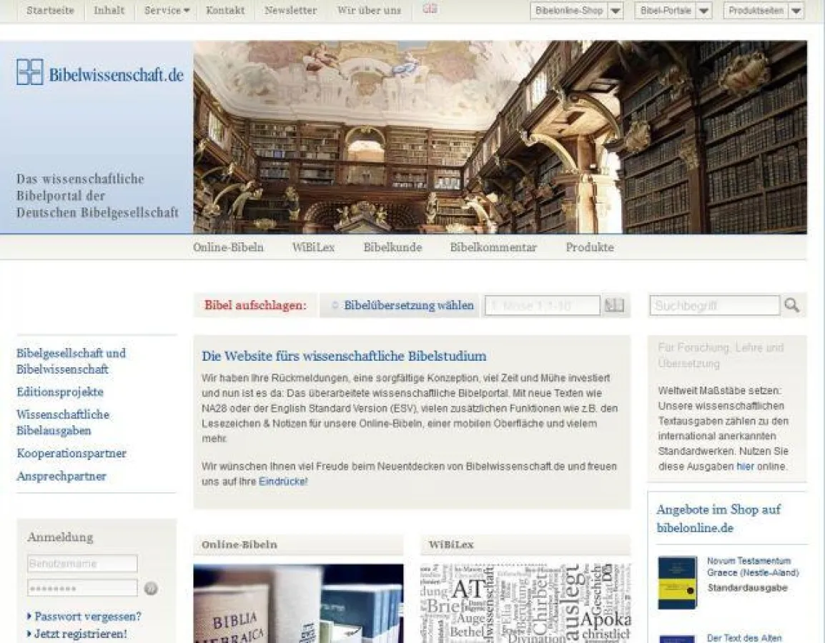 Im Internetportal bibelwissenschaft.de stehen zehn originalsprachliche Aus-gaben und Übersetzungen der Bibel für das Online-Studium zur Verfügung. Zu den Editionen zählen mit der „Biblia Hebraica Stuttgartensia“ und der 28. Auflage des „Novum Testamentum Graece (Nestle-Aland)“ die führenden Urtext-Ausgaben des Alten und Neuen Testaments aus dem Hause der Deutschen Bibelgesellschaft. Sie sind weltweit und interkonfessionell die Standardwerke für Bibelübersetzungen.