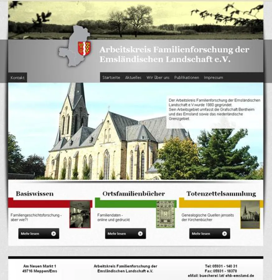 Der Arbeitskreis Familienforschung der Emsländischen Landschaft (abgekürzt AFEL) hat seinen Internetauftritt neu gestaltet. Ab sofort präsentiert sich der Zusammenschluss von etwa 170 Genealogen aus der Region Emsland/Grafschaft Bentheim sowie den benachbarten niederländischen Gebieten unter www.genealogie-emsland-bentheim.de mit einem zeitgemäßen Erscheinungsbild und erweiterten Angeboten. Die Internetseite zeigt sich den Besucherinnen und Besuchern deutlich aufgeräumter, optisch klarer und mit breiteren Serviceangeboten. So finden sich beispielsweise in der Rubrik 'Basiswissen' hilfreiche Texte zum Einstieg in die Familiengeschichtsforschung und in die Suche nach Aus- und Einwandererdaten. Weitere Menüpunkte bieten ein Verzeichnis aller Publikationen des Arbeitskreises sowie der online und gedruckt vorliegenden sogenannten 'Ortsfamilienbücher'. Hinweise auf aktuelle Termine des Arbeitskreises sowie thematisch verwandte Veranstaltungen runden das Bild der neuen Website ab.