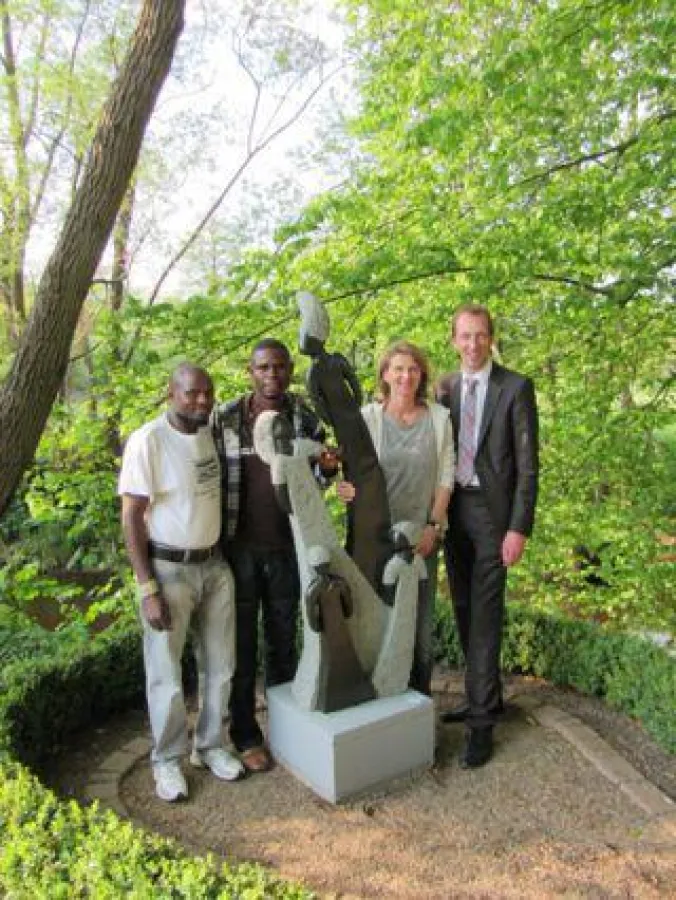 Zimbabwe ist ein reiches Land - reich an Kreativität, Inspiration und Schaffensdrang. Und Zimbabwe ist ein armes Land - selbst für das Nötigste fehlen oft die Mittel. Anette Voelmy liegt es am Herzen, den Menschen in Zimbabwe ein Stück vom Glück zurück zu bringen. Das erste Projekt ihres gemeinnützigen Vereins rufaro e.V. (www.rufaro.de) ist der Bau einer Grundschule im Heimatdorf ihrer Künstler. Um dieses Glück zu realisieren, hilft auch das Hotel Landhaus Wachtelhof sehr engagiert mit: Von jeder verkauften Skulptur gehen zehn Prozent an rufaro e.V. In der Bantu-Sprache des Shona-Volkes in Zimbabwe bedeutet das Wort rufaro übrigens „GLÜCK“. Hier schließt sich eindruckvoll der Kreis: Die Skulpturen aus Afrika lassen durch ihre Wirkung hier in Deutschland eine Form der sozialen Unterstützung zu den Künstlern nach Zimbabwe zurück fließen.