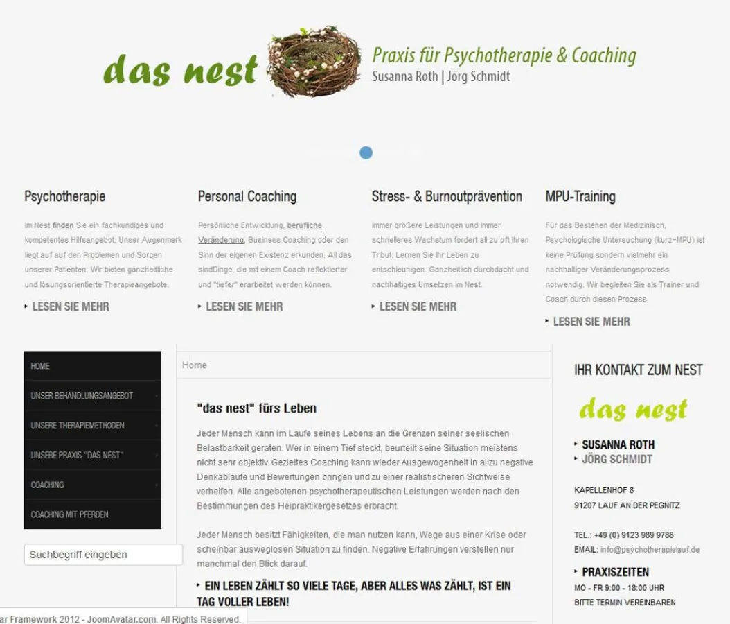 (openPR) Seit kurzem ist die neue Homepage der Praxis für Psychotherapie & Coaching "das nest" in Lauf an der Pegnitz online. Wie schon zahlreiche regionale Unternehmen setzt auch "das nest" bei der Gestaltung ihres neuen Internetauftritts auf sprintfish communication.