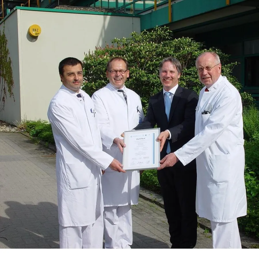 Unter dem gemeinsamen Dach „EndoProthetikZentrum Krankenhaus Rum-melsberg“ versorgen drei hochspezialisierte Abteilungen Patienten mit orthopä-dischen Beschwerden an Hüfte und Knie. Unter der Leitung der Chefärzte Dr. med. Wilhelm Baur, Dr. med. Erwin Lenz und Prof. Dr. med. Richard Stangl werden alle Facetten der Endoprothetik an Hüfte und Knie abgebildet. Im EPZ-max behandeln erfahrene Hauptoperateure Ihre Patienten nach einheitlichen, eingespielten Behandlungspfaden, eine enge Abstimmung bei der Therapieent-scheidung und der weiteren Behandlung sichert die Expertise aller zur Verfü-gung stehenden Fachleute. Das Zertifizierungsverfahren endoCert wurde durch die Deutsche Gesellschaft für Orthopädie und orthopädische Chirurgie (DGOOC) Ende des Jahres 2012 eingeführt. Die DGOOC nimmt sich mit der Etablierung des Zertifizierungsverfahrens als wissenschaftliche Gesellschaft dem Thema Qualität in den ausgewiesenen Zentren an. Das Krankenhaus Rummelsberg hat – seiner Tradition als Spezialklinik für Orthopädie und Unfall-chirurgie folgend – nun die begehrte Zertifizierung als EPZmax erhalten. Bei der Zertifizierung spielen neben festgelegten Merkmalen für die im Zentrum tätigen Operateure vor allem die geplanten Behandlungsabläufe bei der Implantation von Hüft- und Kniegelenken eine große Rolle. Auf eine detaillierte Prothesen-planung muss dabei ebenso geachtet werden, wie auf eine optimale Organisa-tion der Operation im Sinne des Patienten und eine abgestimmte Kommunikati-on aller an der Behandlung beteiligten Ärzte und Therapeuten.Besonders wich-tig ist im Zertifizierungsverfahren endoCert die langfristige Sicherung der erziel-ten Qualität. Die Zufriedenheit der Patienten mit der Behandlung wird dabei ge-nauso in die Analyse einbezogen, wie durch die DGOOC festgelegte Qualitäts-parameter, die einen Rückschluss auf die erreichte Qualität zulassen. Die Teil-nahme des Krankenhauses Rummelsberg am Endoprothesenregister Deutsch-land (EPRD) ergänzt dabei die Grundsätze der Zertifizierung als EPZmax.