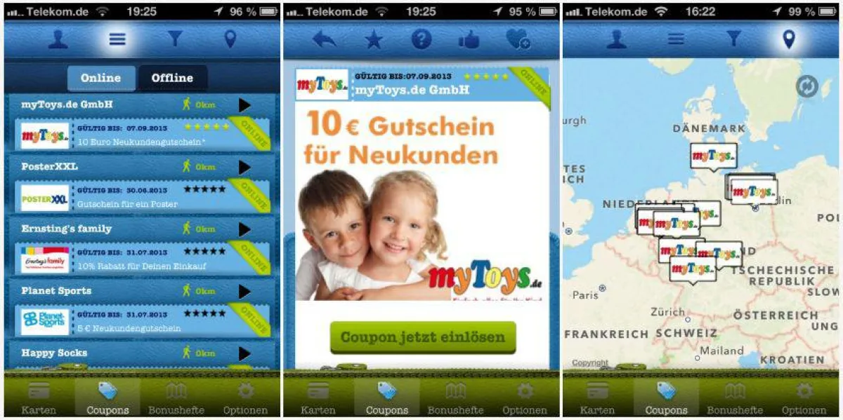 Eine einmalige Anmeldung mit E-Mail-Adresse und Passwort eröffnet den Zugang zu Webseite und App. Dies hat für den Nutzer gleich zwei Vorteile. Zum einen kann er bequem am heimischen Rechner seinen nächsten Einkauf vorbereiten, indem er Coupons als Favoriten markiert. Zum anderen geht selbst bei Handyklau oder kaputtem Smartphone nichts verloren. Einfach die App neu herunterladen, mit dem persönlichen Zugang einloggen und schon sind alle Kundenkarten, Coupons und Bonushefte wieder verfügbar. Wer schon einmal einen Geldbeutel verloren hat oder gar bestohlen wurde, weiß, wie beruhigend dies ist.