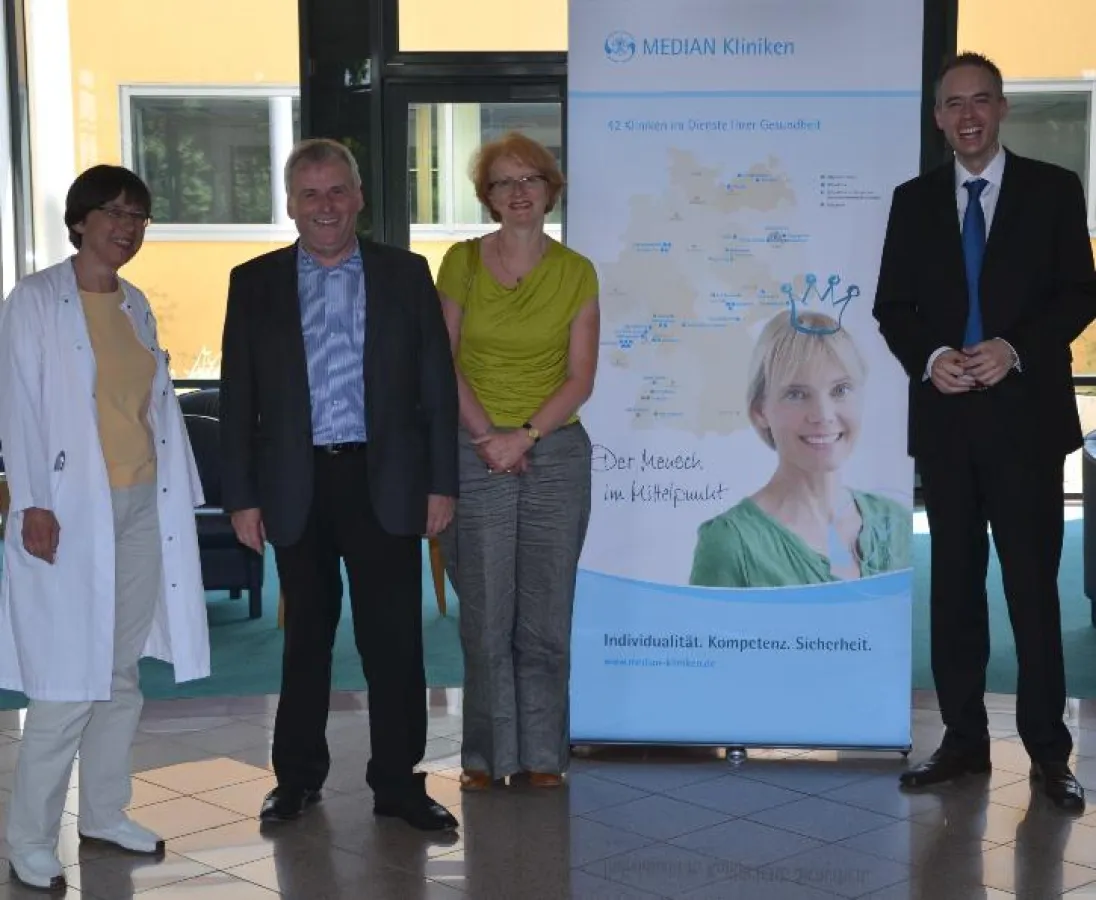 Bildunterschrift: (V.l.n.r.) Dr. Monika Cichorowski, Chefärztin der MEDIAN Klinik NRZ Wiesbaden, SPD-Landtagsabgeordneter Ernst-Ewald Roth, Susanne Becker, Chefärztin der MEDIAN Rehaklinik Aukammtal Wiesbaden sowie Stefan Düvelmeyer, Verwaltungsdirektor der beiden Kliniken.