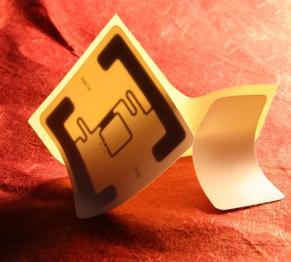 Das GP-T 7015 der GERA-IDENT besteht aus zwei nebeneinanderliegenden Labels. Eins davon enthält ein UHF Inlay. Dieses Inlay beinhaltet eine quadratische, breitbandige Antenne mit sehr guten Eigenschaften für allgemeine Anwendungen, sowie einen Chip mit Zusatzspeicher. Als Deckschicht wird eine hochwertige und gut bedruckbare PET-Folie verwendet. Die Klebeschicht ist ideal für glatte Untergründe und hält auch Temperaturen über 120°C problemlos stand.