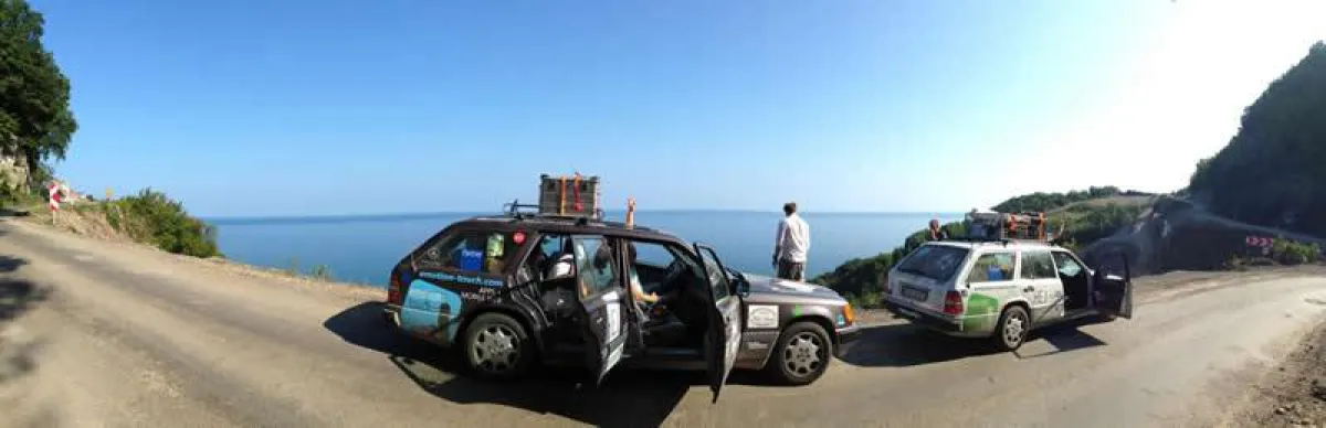 Nun haben die beiden W124 T-Modelle das Ziel, das Schwarze Meer, erreicht. Jetzt gilt es noch das Schwarze Meer zu umrunden und das Ziel Odessa zu erreichen.