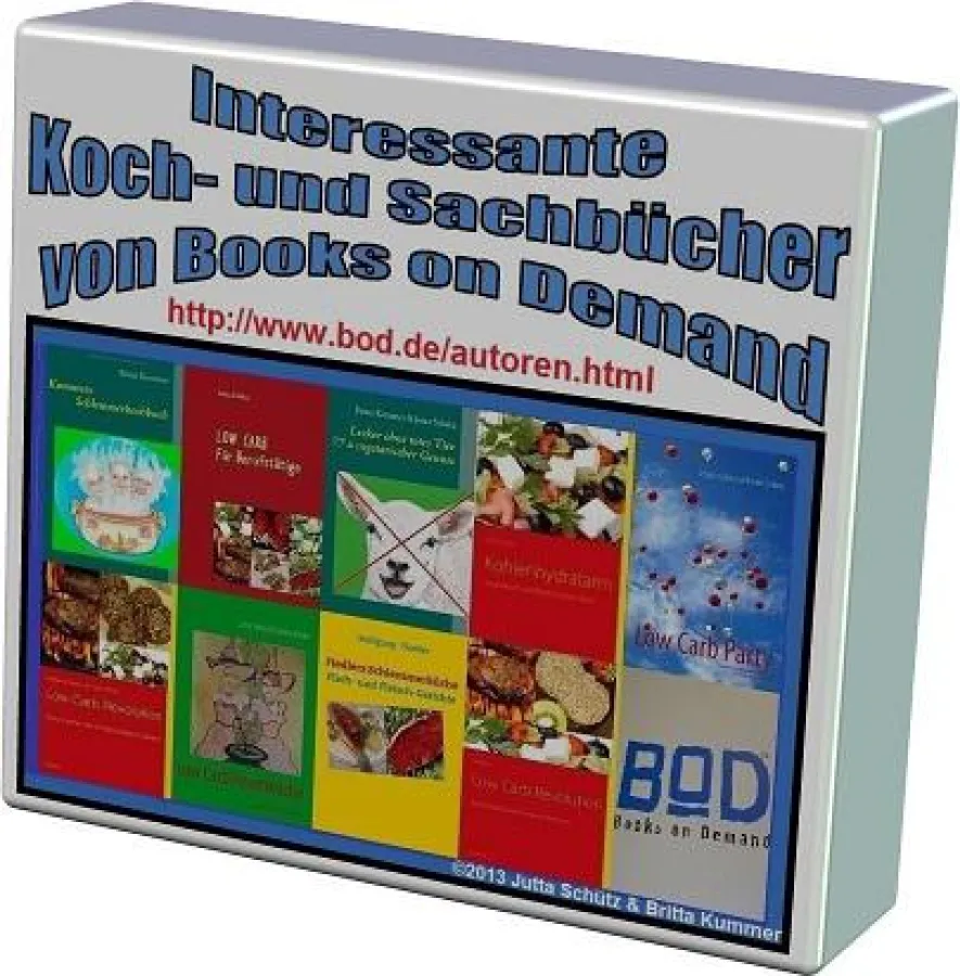 • Low Carb: Für Berufstätige, für unterwegs oder für ein Picknick, Autorin Jutta Schütz, ISBN: 978-3-7322-4328-0 ( Paperback), 3,90 Euro, ISBN: 978-3-8482-8424-5 (E-Book), 2,99 Euro