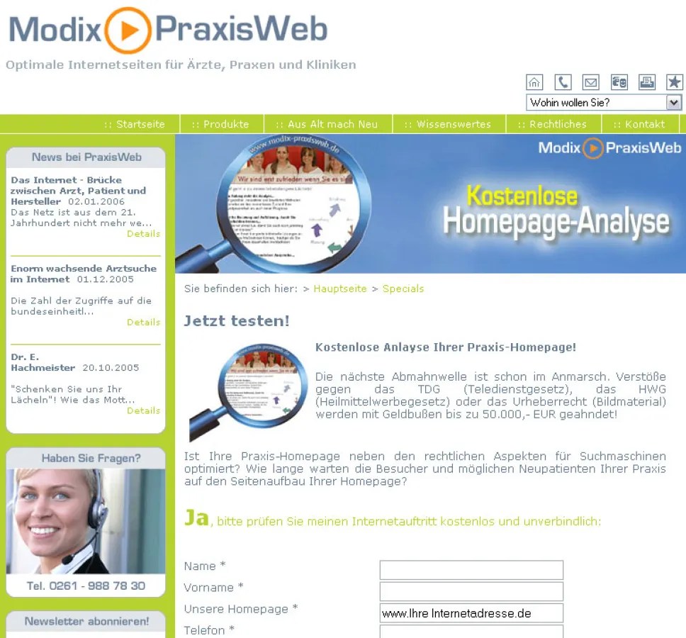 Modix-PraxisWeb checkt Ihre Praxis-Homepage.