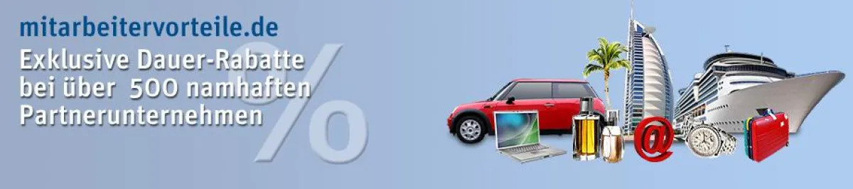Das Mitarbeitervorteilsportal bündelt das Nachfrage-volumen von über 4 Mio. Mitarbeitern mit dem Resul-tat größtenteils wettbewerbsloser Einkaufsvorteile. Es wird ein umfangreiches Portfolio angeboten mit 500 namhaften Leistungspartnern in allen nach-gefragten Konsum- und Dienstleistungsbereichen mit 4 % bis zu 60 % Ermäßigung.