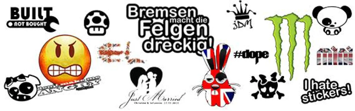 Lustige Sprüche sind schon länger auf dem Markt aber noch immer sehr beliebt. Vom “turbo inside Aufkleber” angeknüpft an das Logo vom Hersteller Intel, über “man sind sie dicht” bis hin zum “Lichthuper willkommen Aufkleber” gibt es alles. Besonders angesagt sind auch individuell gestaltbare Aufkleber, zum Beispiel mit dem eigenen Namen oder den Initialen. Hier ist der Kreativität keine Grenze gesetzt.