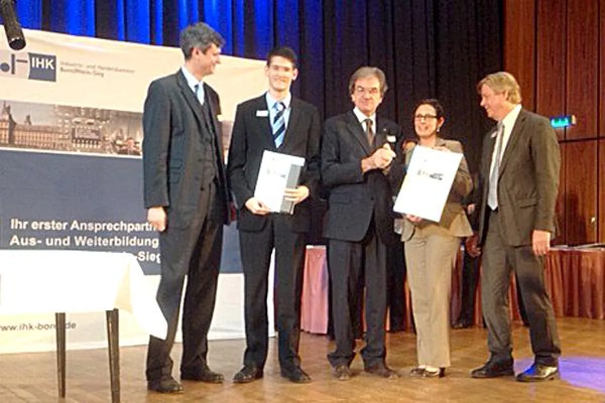 (openPR) Hennef, 3. Dezember 2013. Die Industrie- und Handelskammer Bonn/Rhein-Sieg zeichnete am gestrigen Abend den CONET-Auszubildenden Christian Nüssgens für seine außerordentlichen Leistungen aus. Der 23-Jährige schloss als einziger in der Sparte Fachinformatiker Anwendungsentwicklung seine Ausbildung mit „sehr gut“ ab. „Ich bin sehr froh, dass ich bei CONET so eine gute Ausbildung genießen durfte. Da ich relativ schnell produktiv arbeiten durfte, konnte ich viele praktische Erfahrung sammeln und meine eigenen Ideen einbringen“, resümiert Christian Nüssgens zu seiner Ausbildung bei CONET. „Sowohl die fachliche Wissensvermittlung durch meine Ausbilder als auch der Spaß gemeinsam in einem tollen Team vielseitige Projektaufgaben zu bearbeiten haben entscheidend dazu beigetragen, die Abschlussprüfung erfolgreich zu bestehen.“