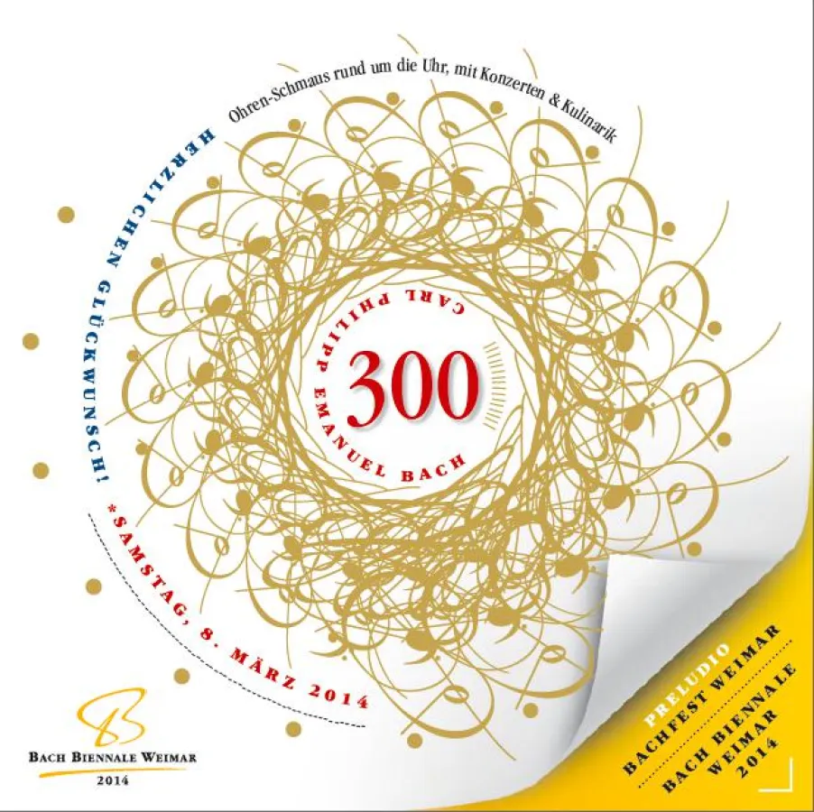 Zum 300. Geburtstag Carl Philipp Emanuel Bachs am 8. März lädt die BACH BIENNALE WEIMAR mit „Bach – ein rauschendes Fest!“ zu einem Benefizkonzertevent rund um die Uhr ein. Renommierte Musiker aus ganz Europa werden in acht Konzerten ohne Honorar für den berühmten Weimarer Bachsohn und für ein Bachhaus Weimar auftreten. Auf den Programmen steht Musik von C.P.E. und J.S. Bach sowie von Haydn, Mozart, Mendelssohn Bartholdy, Schubert, Schumann, Benda, Corelli, Legrenzi, Frescobaldi u.a., wie auch deutsche Volkslieder.