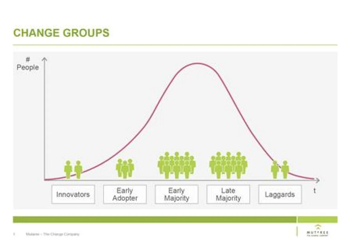 Netzwerke entwickeln Werte und beeinflussen Kulturen. In Veränderungsprozessen ist es von großer Bedeutung, sehr früh Plattformen und Strukturen einzurichten, auf denen sich eine Change Community entwickeln kann. Die Gründungsmitglieder der Change Community als „early adaptors“ wirken als Multiplikator für die „Nachfolger“, fördern die Akzeptanz des anvisierten Veränderungszieles und regen zum Mitmachen an.