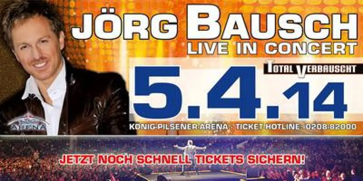 Am 05.04.2014 wird Jörg Bausch wieder in der König-Pilsener-Arena in Oberhausen seine Fans total verbauschen. Dort möchte er alles bisher Gesehene erneut toppen. Deshalb wurde sein Motto von "Jörg Bausch in Concert” auch auf "Jörg Bausch in Concert – Total verbauscht – Die Show 2014? erweitert. Die Messlatte hat Jörg Bausch sich selbst verdammt hochgelegt, aber, wer ihn schon live erlebt hat, weiß, dass bereits das neue Motto vielversprechend ist und Jörg Bausch seine Versprechen stets hält. Jörg Bausch ist eben immer mehr als man denkt! Und davon kann man sich wieder am 05.04.2014 LIVE überzeugen. Aber Vorsicht: Gegen Bausch ist noch kein Kraut gewachsen! Wer das Konzert besucht, läuft Gefahr sich total zu verbauschen!
