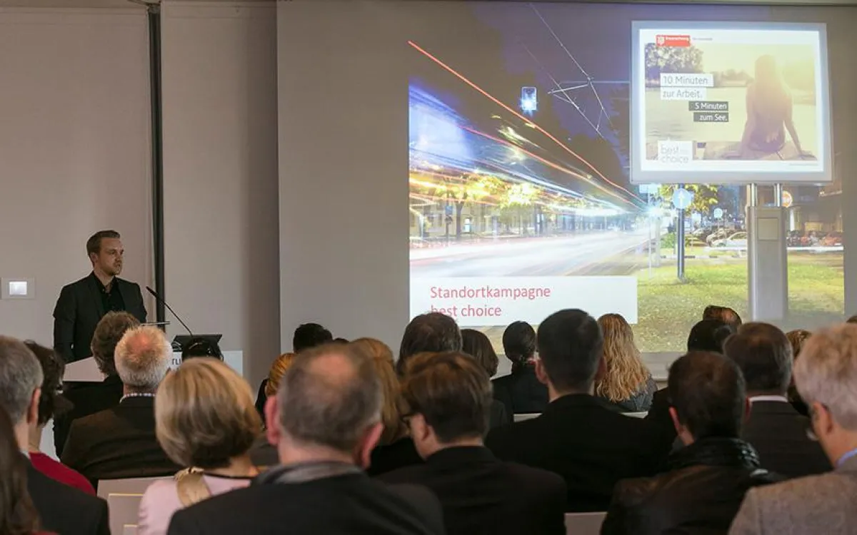 Gemeinsam mit Gerold Leppa, Wirtschaftsdezernent und Geschäftsführer des Stadtmarketings, präsentierte unser Etat-Direktor David Hoff vor rund 70 potentiellen Kooperationspartnern die ersten Ideen und Entwürfe. Mit Beteiligung dieser Partner soll die Kampagne dann realisiert werden. Ergebnis des Abends: „best choice" überzeugte auf ganzer Linie, sodass einige Unternehmen bereits vor Ort ihre Kooperation zusagten.