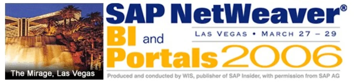 SAP NetWeaver/BI and Portals 2006, Las Vegas, Mar. 27-29 – Learn how to optimize SAP NetWeaver, SAP Enterprise Portal, and SAP BW. Comprehensive tracks offer information on the strategy, development, administration, planning, and upgrade activities that encompass SAP NetWeaver, SAP EP, and SAP BW.
