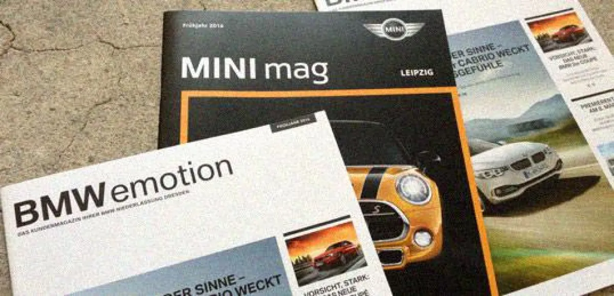 Den ersten Gang hat die Texterkolonie bereits eingelegt und fleißig auf die Tube gedrückt: Die aktuellen Kundenmagazine BMWemotion und MINImag stammen aus der Feder der Kolonisten. Neben der Einführung der BMW-Modelle X4 und i8 kündigte man den BMW Active Tourer an; weiterhin wurden der MINI Countryman als auch diverse Kunden und Mitarbeit porträtiert. Die Texterkolonie aus Leipzig ist verantwortlich für die Redaktionsarbeit und damit verbunden für Themenentwicklung und -realisierung in Artikeln und im Projektmanagement.