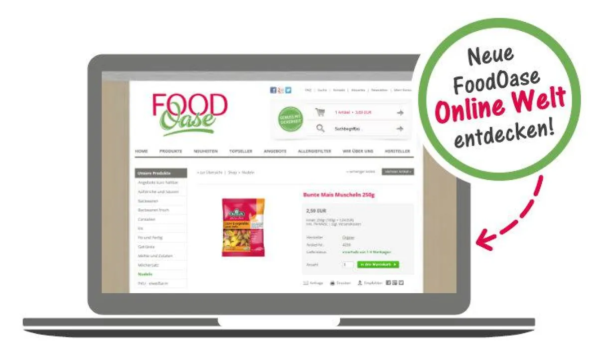 (openPR) Nach einiger Entwicklungszeit erstrahlt der FoodOase Online-Shop seit Anfang Mai in neuem Glanz. Eine frische Farbwelt, eine klar strukturierte Benutzeroberfläche und ein übersichtlicher Allergiefilter sorgen für einen problemlosen Lebensmittel-Einkauf im Netz, bei dem Genuss mit Sicherheit stets höchste Priorität einnimmt.