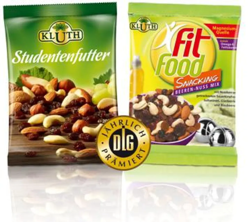 (openPR) Auch im Jahr 2014 kann KLUTH seine Position als Lieferant von hochwertigen Nusskernen und Trockenfrüchten eindrucksvoll unter Beweis stellen: So erhielten zwei erfolgreiche Nuss-Frucht-Mischungen neben vielen weiteren Produkten erneut die begehrten Prämierungen der DLG (Deutsche Landwirtschaftskammer).