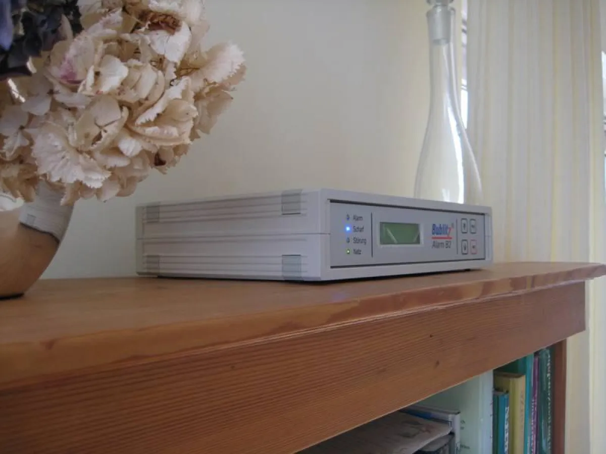 Bublitz Alarm B2 heißt das elektronisch gesteuerte System, das mit einer völlig anderen Technik als herkömmliche Anlagen arbeitet. Es misst nicht nur den Luftdruck in einem Raum oder Haus, sondern auch die Resonanzfrequenz, und zwar mit einem speziellen, in Kunststoff eingegossenen Sensor, dem Herz des Ganzen. Weil dieser für das Gerät so essentiell ist, hat Werner Bublitz technisch dafür gesorgt, dass ihn niemand so schnell nachbauen kann, und zwar so erfolgreich, dass er jetzt schon über 20 Jahre lang damit allein steht.