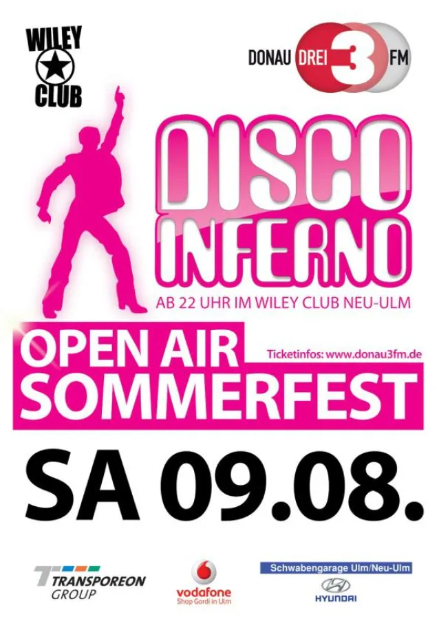 (openPR) Am 9. August feiert der Neu-Ulmer Stadtteil Wiley sein Sommerfest und die ganze Region ist dazu eingeladen. Im historisch geprägten Wiley Club wird es sommerliche Cocktailbars, chillige Lounge-Bereiche und abends dann die legendäre Party „DISCO INFERNO“ geben.