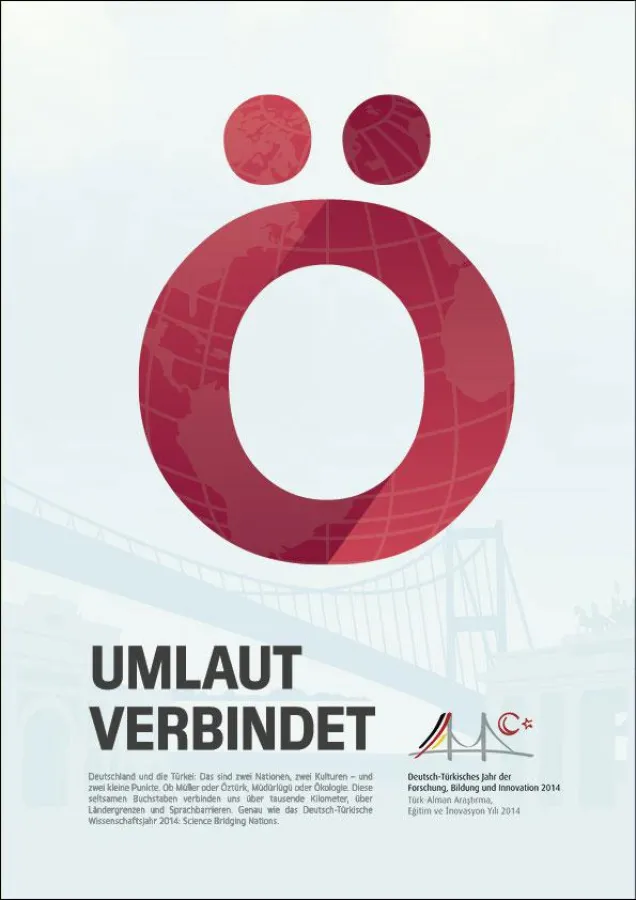 “Mit Umlauten ein Ausrufezeichen gesetzt” – so lässt sich der Siegerentwurf der beiden Grafiker Björn Ole Vogt und Alexander Suchy im Hinblick auf die Visualisierung der deutsch-türkischen Zusammenarbeit wohl am prägnantesten zusammenfassen. Doch nicht allein das Hamburg-Berliner Grafiker-Duo, dessen Plakat-Variationen den programmatischen Titel “United by Umlaut” tragen, hat die Erwartungen der Initiatoren des Wettbewerbs vom Bundesministerium für Bildung und Forschung (BMBF) weit übertreffen können. Dank der größtmöglich barrierefreien Teilnahmemöglichkeit über eine Onlineplattform sind in den vergangenen Monaten mehr als 170 Zeichnungen, Fotografien, Illustrationen und Collagen entstanden.