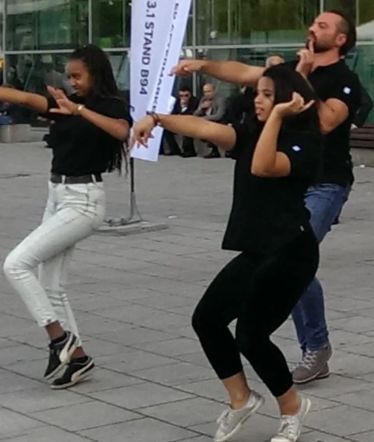 An einem jeden Messetag wurde bereits vormittags mit einem Dance-Flashmob gestartet, was neben dem anderen dort stattfindenden Programm, das absolute Highlight darstellte. Hierbei wurde die Fläche vor der Halle mit Musik beschallt, woraufhin ein Breakdancer anfing sich zum Beat zu bewegen. Bereits kurze Zeit später wurde dieser durch immer mehr Flashmobber unterstützt, bis 20 Tänzer synchron zu dem Musikremix tanzten. Sämtliche dort anwesende Passanten blieben stehen, sodass sich bereits nach ein paar Minuten eine Menschentraube gebildet hatte.