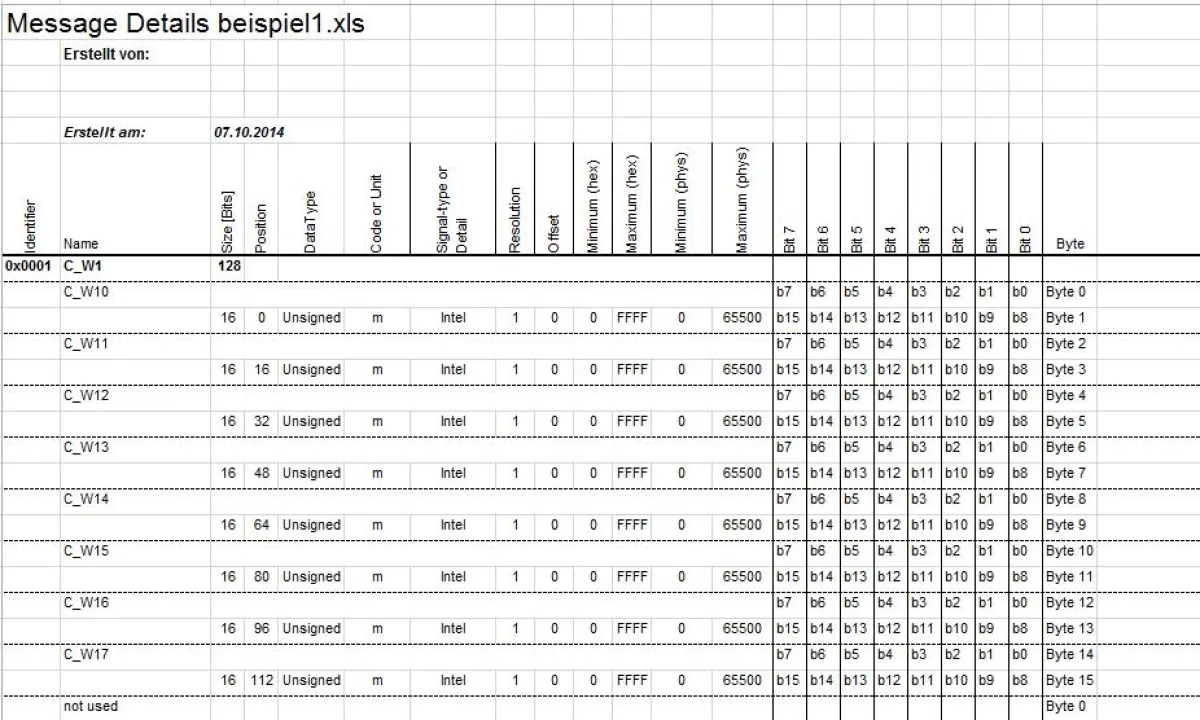 (openPR) Die ATMES GmbH liefert ab sofort einen Konverter von automobilen Datenbankformaten nach Excel aus. Mit diesem einzigartigen Tool können automobile Datenbanken in den Formaten FIBEX, AUTOSAR, CANdbc und LIN ldf in das Microsoft Excel Format umgewandelt werden. DbToExcel legt in der Excel Export-Datei zwei Arbeitsmappen an. Zum einen die Arbeitsmappe Message-Matrix, die eigentliche Kommunikationsmatrix, die Sender und Empfänger der jeweiligen Botschaften darstellt. Zum anderen die Arbeitsmappe Message-Details, in der die Details aller Botschaften/Signale bis auf Bit-Ebene aufgelöst und dargestellt werden. Dies ist z. B. sehr hilfreich wenn aus den Formaten FIBEX, AUTOSAR, CANdbc und LIN ldf wieder eine Kommunikation-Matrix für eine Auswertung in Excel nötig ist. Unterstützt werden die Formate FIBEX 3, FIBEX 4, AUTOSAR 3, AUTOSAR 4, CAN dbc Automotive und LIN ldf. Die unterstützten Bussysteme sind CAN, LIN und FlexRay. Eine Unterstützung von Some/IP ist auf Nachfrage möglich.