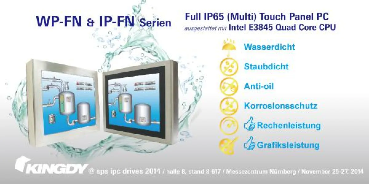 (openPR) Dringend empfohlen für SPS IPC Drives 2014: KingdyWP-FN & IP-FN Serien Full IP65 (Multi) Touch Panel PC ausgestattet mit Intel E3845 Quad Core CPU Wasserdicht, Staubdicht, Anti-oil & Korrosionschutz