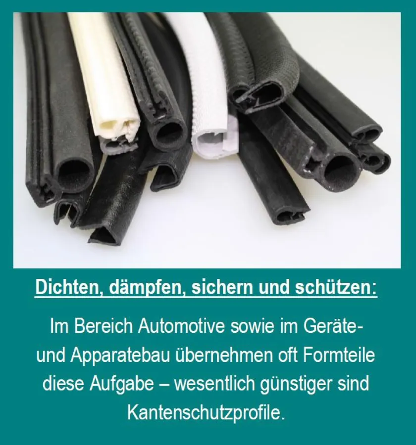 (openPR) Westerrönfeld, 12. November 2014. Im Bereich Automotive sowie im Geräte- und Apparatebau kommen regelmäßig Funktionsteile zum Einsatz, die dichten, dämpfen, sichern und schützen. Nicht selten greifen Konstrukteure dabei auf teure Formteile zurück. Wesentlich günstiger sind Kantenschutzprofile als Extrusions-Produkte, die nach kundenspezifischen Vorgaben vom Dichtungshersteller REXIO ( http://www.rexio.de ) gefertigt werden.