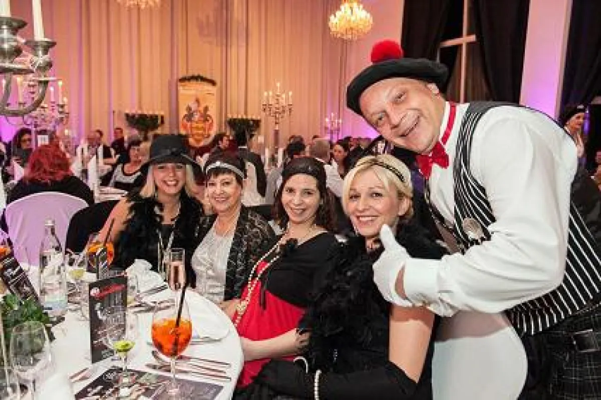 Das Wechselbad der Gefühle wird in der Tat schnell greifbar. Einige Gäste wirken beim Betreten der ins Kerzenlicht getauchten Orangerie noch zurückhaltend, anderen ist die Freude auf das Kommende schon am 20er Jahr Outfit mit Federboa und Zylinder deutlich anzusehen. „Wir haben sehr viele Wiederholungstäter, die bereits mehrere Abende besucht haben“, freut sich der Bankettchef. „Viele davon sind Übernachtungsgäste. Unser Arrangement beinhaltet schon die passenden Accessoires,“ erklärt Novotny. Die Schauspieler begrüßen die Gäste selbst und führen sie an ihre Plätze, teilweise so irrwegig und humorvoll, dass das Eis ganz schnell gebrochen ist und alle Tischnachbarn direkt ins Gespräch kommen.