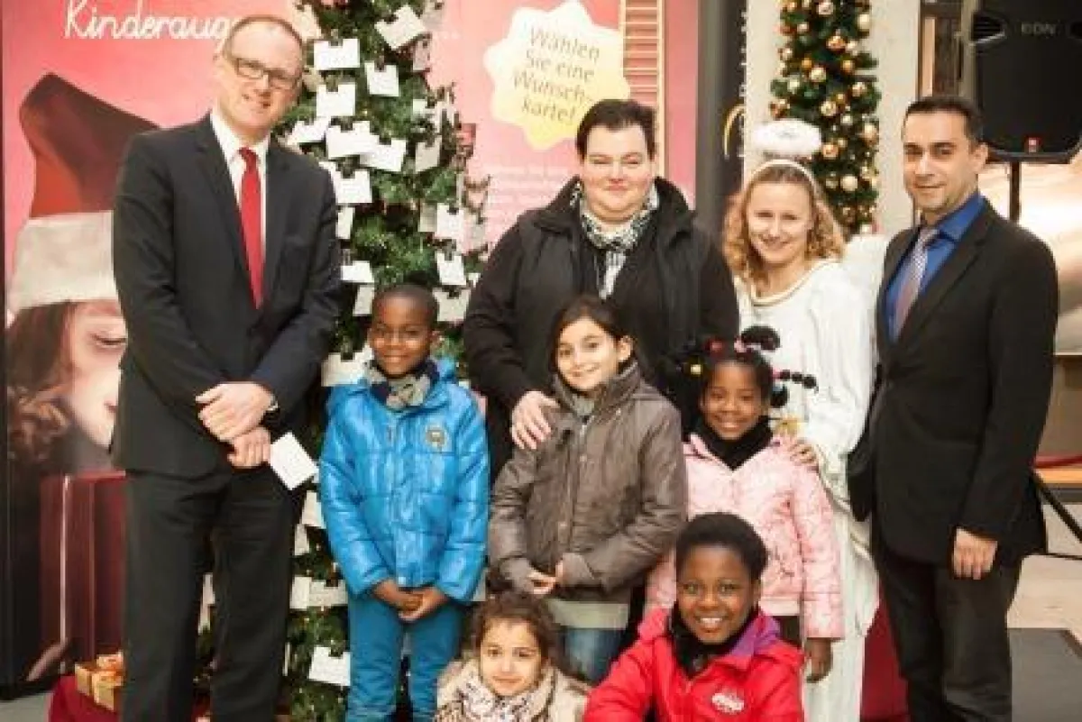 (Duisburg, 24. November 2014) Im Beisein von Oberbürgermeister Sören Link, Nicole Elshoff (Immersatt Kinder- und Jugendtisch e. V.) und Nidal Sadeq (Center Manager FORUM Duisburg) ist am 21. November 2014 die Wunschbaum-Aktion im FORUM Duisburg - frei nach dem Motto „Lassen Sie Kinderaugen strahlen“ - gestartet. Ab sofort haben die Besucherinnen und Besucher des FORUM Duisburg die Möglichkeit, Herzenswünsche von sozialbenachteiligten Kindern und Jugendlichen zur Weihnachtszeit zu erfüllen. In der Regel liegen die Wünsche jeweils bei einem Einkaufswert von bis zu 30,00 €. Hierfür muss lediglich eine Wunschkarte vom Wunschbaum genommen werden. Das am Baum stehende Engelchen ist gerne dabei behilflich und die Servicemitarbeiterin der Information nimmt die gekauften Geschenke bis zum 16.12.2014 entgegen.