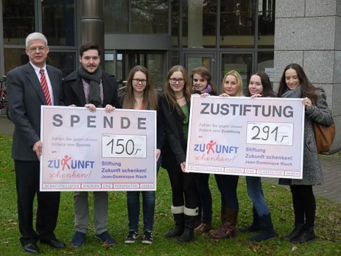 (openPR) Seit vielen engagieren sich Studentinnen und Studenten der Rheingauer European-Business-School für Kinder und Jugendliche im Rheingau und fördern die Kinderhilfestiftung „Zukunft schenken!“. Die Stiftung freut sich nun, dass auch die Studentinnen und Studenten der EBS Law-School in Wiesbaden die wertvolle Arbeit der Stiftung entdeckt haben. Zum Jahresende überreichte das Team in Wiesbaden um Lisa Egger (Mitte) eine Zustiftung. Brian Gibbs, Associate Dean der EBS-MBA Programs in Oestrich-Winkel, überreichte kurzentschlossen eine weitere Spende von Teilnehmern dieses Studienangebotes.