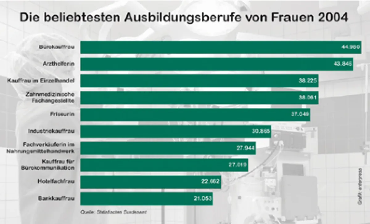 Derzeit gibt es unter den Schulten-Gebäudereinigern keine Frau. „Wir hoffen sehr, dass sich das bald ändert", sagt Schulten-Mitarbeiter Tim Bergmann. Und die Chancen dafür stehen gut. „Die Anzahl der Frauen in diesem Bereich wird langsam größer", so Ulf Wilhelm vom Bundesinnungsverband. Die beliebtesten Ausbildungsberufe sind allerdings immer noch die Lehrstellen zur Bürokauffrau, Arzthelferin und Einzelhandelskauffrau. „Unser Ziel ist es, dass die Mädchen für sich erkennen, dass nicht jede eine Lehrstelle als Friseurin oder Boutiqueverkäuferin bekommen wird", so Claudia Keiling.