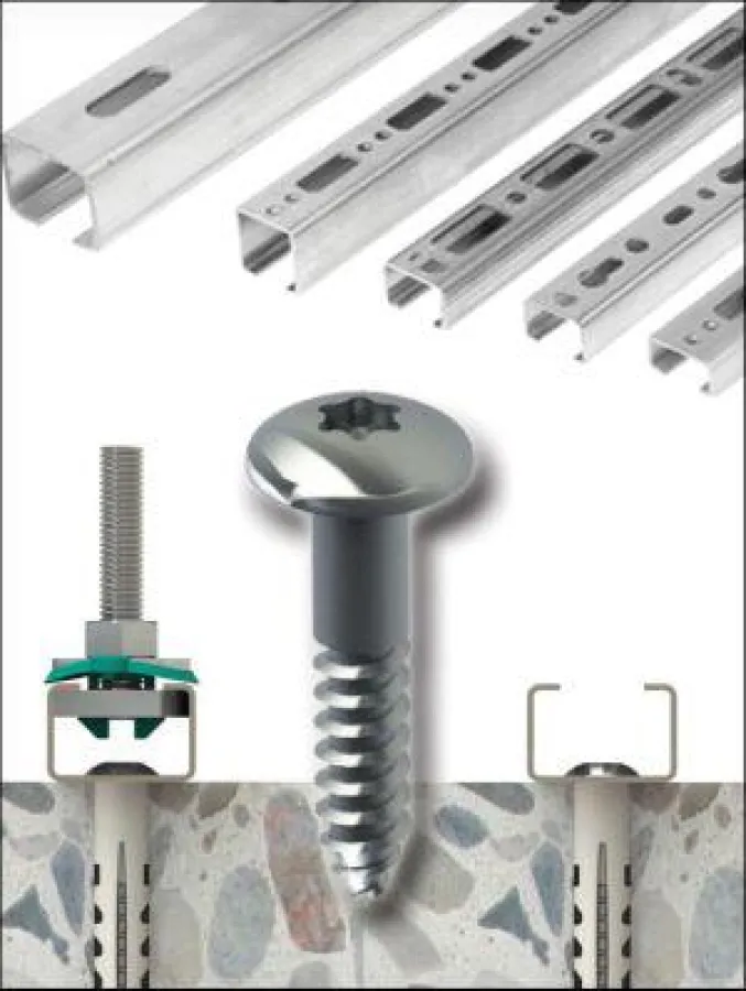 Durch den flachen Schraubenkopf lassen sich Zubehörteile wie BIS RapidRail® Hammerfix schneller und flexibler an der Schiene montieren.