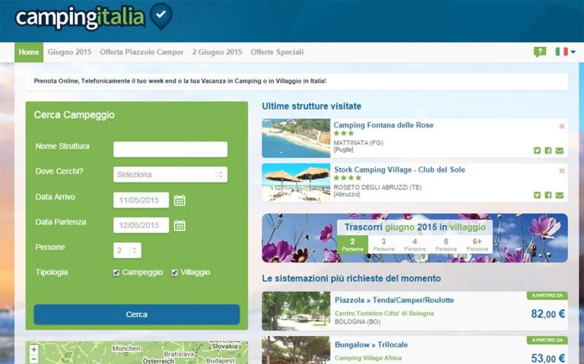 (openPR) Der Sommer steht vor dem Tür. Campingitalia.it (deutsch.campingitalia.it/ ), online Reservierungswebsite vom Netzwerk Koobcamp, ist auch dieses Jahr wieder der Ausgangspunkt für Touristen aus ganz Europa, die online einen Bungalow, Mobilheim oder Stellplatz auf einem Campingplatz oder in einem Feriendorf in Italien buchen möchten.