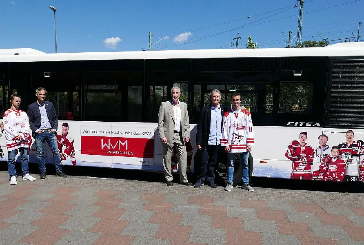 Gesponsert hat den Bus der Kölner Bauträger WvM Immobilien + Projektentwicklung GmbH in Kooperation mit e-weinzierl. Die Förderung des Kölner Nachwuchseishockeys hat für die WvM schon seit längerem eine besondere Bedeutung. Bereits vor zwei Jahren schickte die WvM einen Bus mit attraktiver Beklebung auf die Straße.