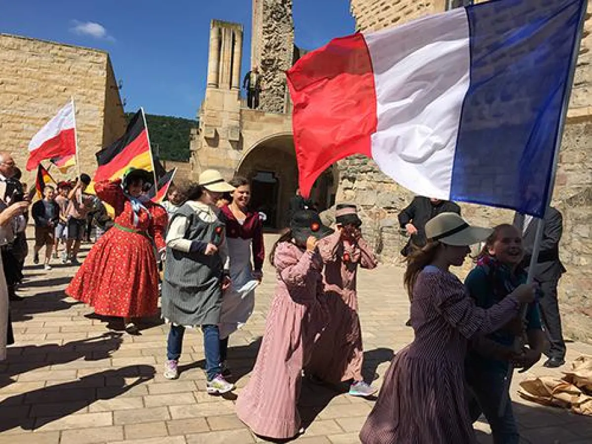 Hambach. Hinauf, hinauf zum Schloss! - Vor rund 183 Jahren versammelten sich circa 30.000 Menschen aus Deutschland, Frankreich und Polen am Hambacher Schloss um für bürgerliche Freiheit und Mitbestimmung zu kämpfen. Die in die Geschichtsbücher als Hambacher Fest eingezogene Geburtsstunde der deutschen Demokratie lud den Ort, an dem sie stattgefunden hat, mit dem revolutionären Gefühl auf, das noch heute spürbar ist. Auch oder vor allem im Jahr 2015 gilt das Hambacher Schloss als Symbol für Gleicheit, Toleranz und Demokratie in Europa.