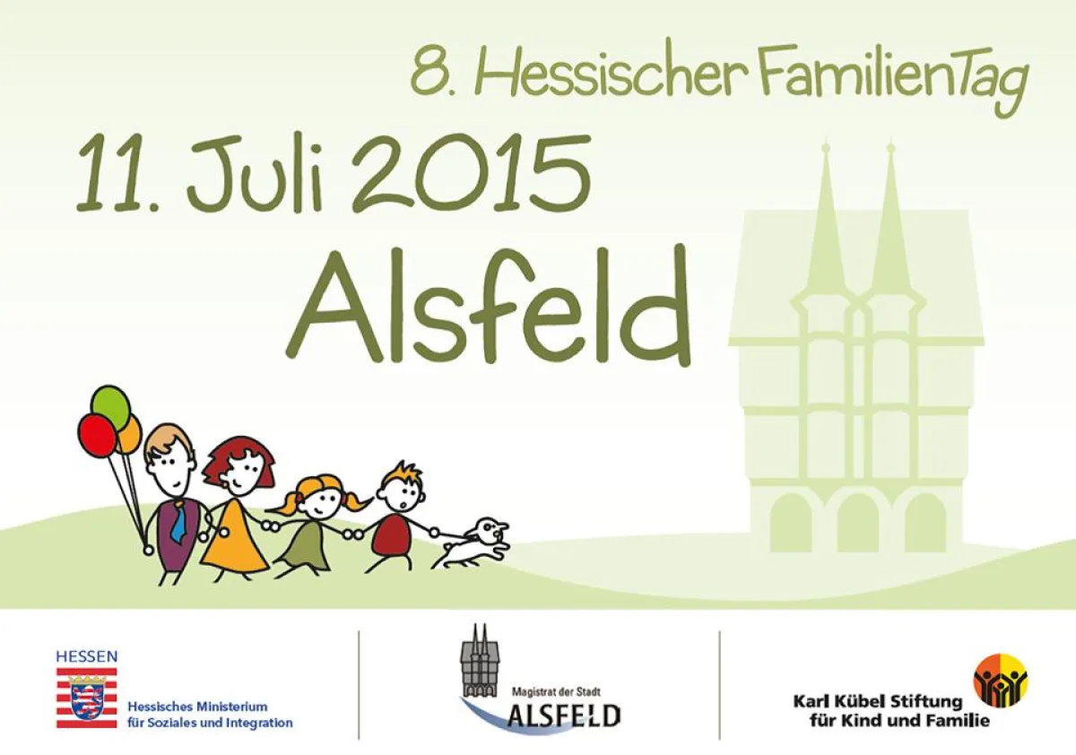 Der Hessische Familientag ist ein wichtiger Baustein auf dem Weg zum Familienland Hessen und spiegelt die Vielfalt der bereits existierenden Angebote, Initiativen und Projekte für Familien wider. Die Open-Air-Veranstaltung findet in der Innenstadt von Alsfeld statt. Das Familientagsgelände, auf dem Vereine, Einrichtungen, Initiativen und Organisationen aus der Region Alsfeld und aus ganz Hessen das breite Spektrum der Familienarbeit in Hessen präsentieren, erstreckt sich über den Marktplatz in der Altstadt bis hinunter an den Lindensportplatz. Der Hessische Familientag geht auf eine gemeinsame Initiative des Hessischen Ministeriums für Soziales und Integration und der Karl Kübel Stiftung für Kind und Familie zurück und wird in Kooperation mit der Stadt Alsfeld im Vogelsbergkreis durchgeführt. Die hessenstiftung – familie hat zukunft ist von Anfang an dabei und hat mit prägenden Aktionen an den erfolgreichen Familientagen in Bensheim, Fulda, Hofgeismar, Eschborn, Korbach, Eltville und Weilburg teilgenommen.