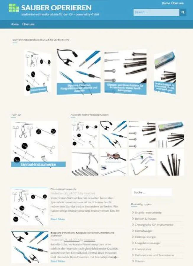 Sämtliche Artikel haben CE-Kennzeichen und wurden in der EU produziert.www.sauber-operieren.de ist nach www.einmalsauger.de der zweite Geschäftsbereich der GVBM, nachdem in 2013 bereits viele Kunden auf Einmalsauger der GVBM setzten.