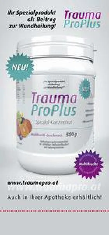 TraumaProPlus wurde als Nahrungsergänzungsmittel für Situationen entwickelt in denen ein erhöhter Bedarf an Nährstoffen, Spurenelementen und Vitaminen besteht. Wichtig für den Anwender ist, diesen Bedarf mit nur einem Produkt abzudecken, das preiswert, bekömmlich und dazu noch wohlschmeckend und einfach in der Anwendung ist. TraumaProPlus wird in Österreich unter Aufsicht von Ärzten und Ernährungsexperten produziert.