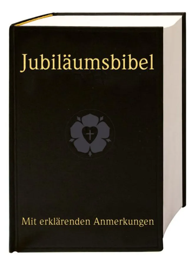 Der Bibeltext in der Jubiläumsbibel ist versweise zweispaltig gesetzt mit fett gedruckten Kernstellen. Die biblischen Vergleichsstellen stehen jeweils am Ende des Verses. Die erläuternden Anmerkungen sind im Anschluss an die Perikopen eingeschoben, auf die sie sich beziehen.