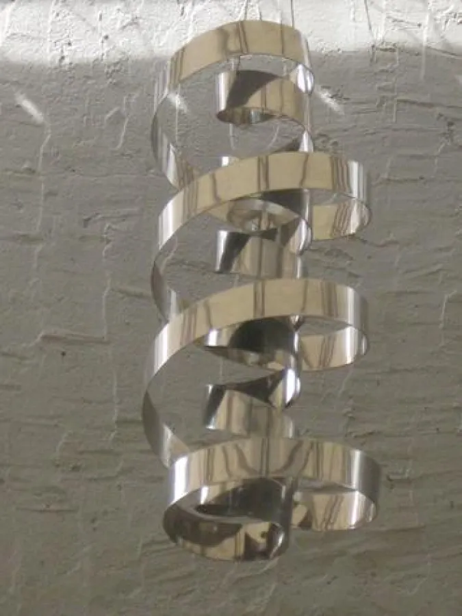 Die Doppelhelix, der Grundbaustein allen Lebens, wurde vor über fünfzig Jahren von Francis Crick und James Watson entdeckt. Sie besteht aus zwei Strängen, die spiralförmig ineinander gegenläufig gedreht sind. MuseumsChef Stief hat aus poliertem Edelstahl ein 1m hohes vertikales Designobjekt der Doppelhelix anfertigen lassen und an der Südseite der EXPLORA hängend platziert.