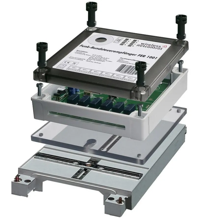 Das Funkrundsteuergerät FER 1001 der Wireless Netcontrol GmbH aus Hohen Neuendorf vereint eine zentrale Steuerung mit niedrigsten Betriebskosten und höchster Skalierbarkeit in einem System. Über 1000 verschiedene Kombinationen von Schaltungen sind einstellbar. Über Tasten lassen sich die Relaisfunktionen unabhängig von der Schaltuhr testen. Zur Möglichkeit der Überprüfung eines korrekten Betriebes werden im Empfänger eine Ereignisliste sowie eine Telegrammliste geführt. Diese enthalten Informationen über die zuletzt ausgeführten Schalthandlungen sowie der empfangenen Signale und sind über die optische Schnittstelle auslesbar. Das kompakte Design ist auch zur Hutschienenmontage geeignet und besitzt die „Maße“