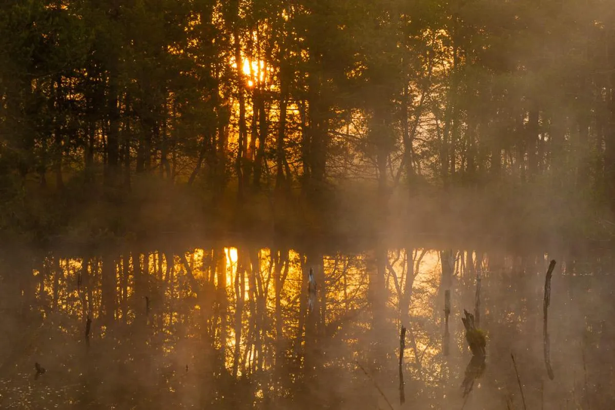 Moore strahlen oft etwas Geheimnisvolles und Faszinierendes aus, so auch das Pietzmoor. Dieses 8.000 Jahre alte Hochmoor ist das größte zusammenhängende Moor in der Lüneburger Heide. Über Bohlenwege lassen sich moortypische Pflanzen wie Wollgras, Sonnentau und Glockenheide entdecken. Aus dem Wasser ragende Birken- und Kiefernstümpfe ergeben ein bizarres Bild. Mit etwas Glück können Kanadagänse, Kreuzottern oder Kraniche beobachtet werden. Im Pietzmoor lassen sich sehr stimmungsvolle Bilder aufnehmen, vor allem bei herbstlichem Morgennebel.