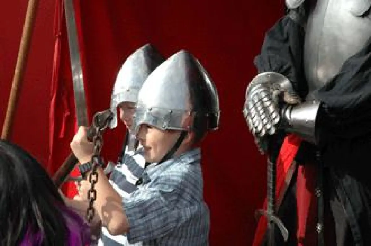 Alle Besucher sind zum Mitmachen und Mittanzen eingeladen. Es dürfen Rüstungen anprobiert, Helme aufgesetzt oder Schwerter geschwungen werden. Besonders mutige Jungritter dürfen auch in der Manege gegen einen richtigen Ritter antreten.
