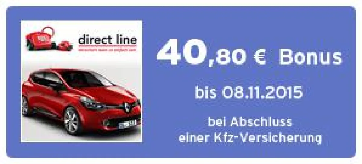 Für interessierte Neukunden bietet Deutschlands größtes Bargeldbonusprogramm Andasa seinen Nutzern in einer gemeinsamen Sonderaktion mit Direct Line jetzt einen Sonderbonus von 40,80 Euro beim Abschluss einer KFZ-Versicherung.