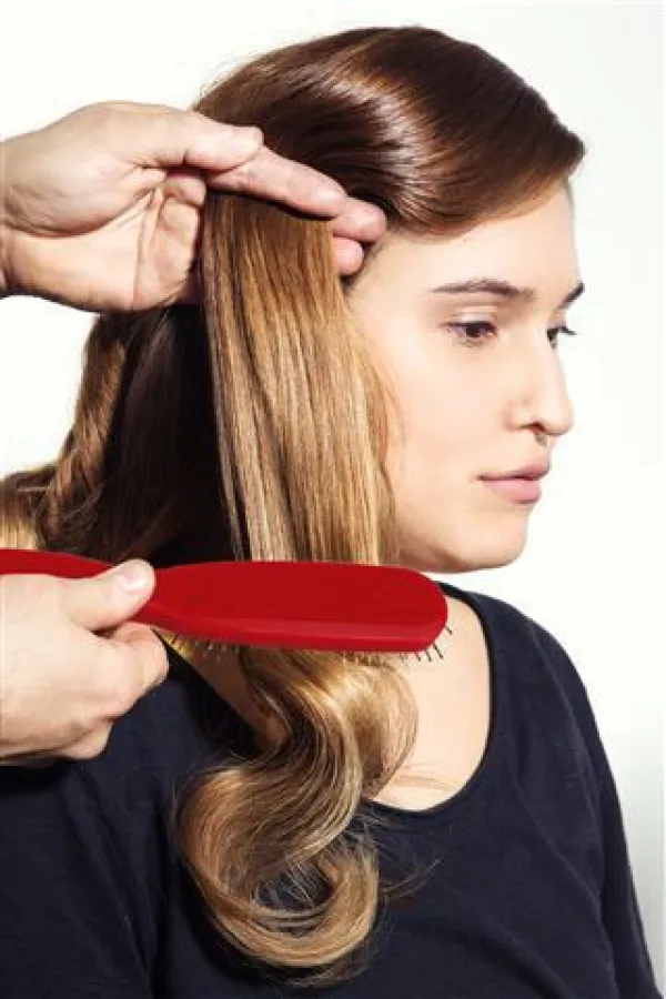 3. Für das glamouröse Finish, das Haar mit einem stabilen Griffkamm (696W-591W) in sanfte Wasserwellen legen, eine Seite des Haares am Hinterkopf feststecken und zum Schluss mit Haarspray fixieren.