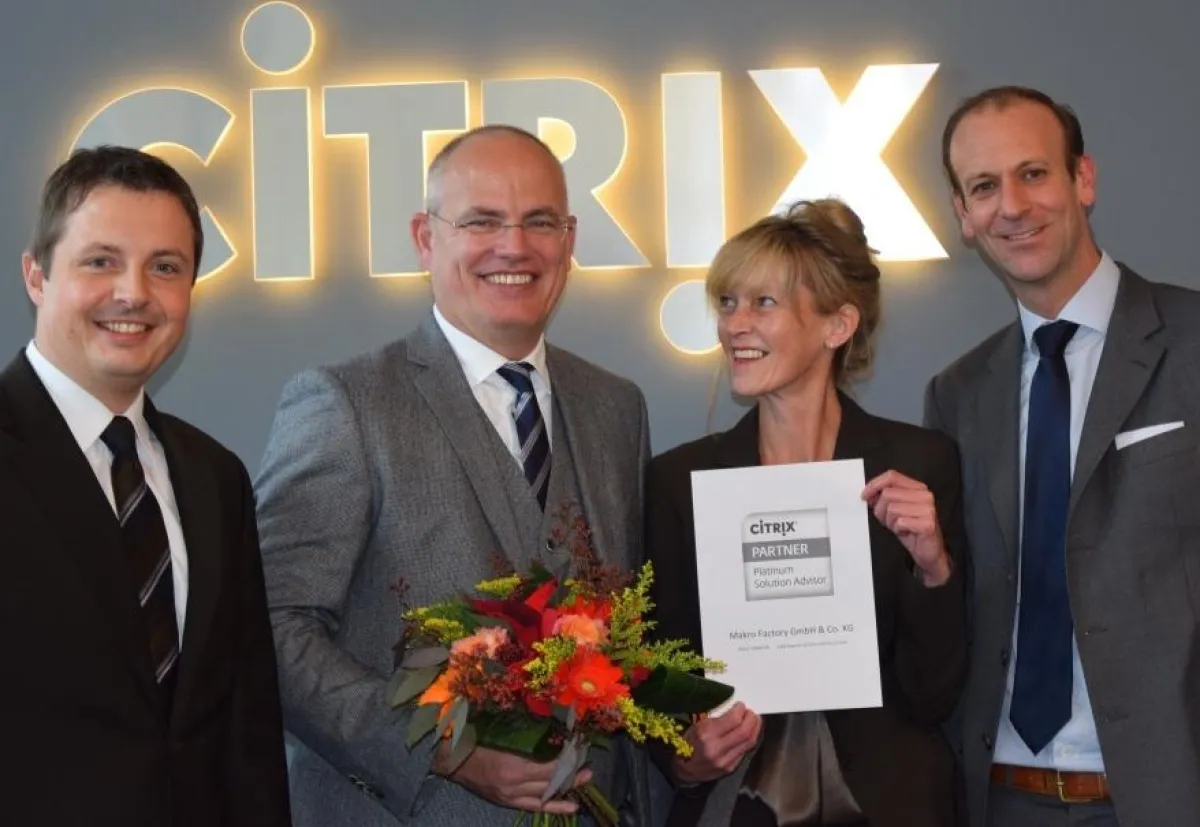 Peter Goldbrunner, Country Manager Deutschland bei Citrix, gratuliert der Makro Factory: „Makro Factory ist ein Partner, der stets durch seine innovativen und flexiblen Ideen sowie fachlich herausragendes Know-How überzeugt. Citrix und Makro Factory beschreiten bereits seit vielen Jahren einen gemeinsamen Weg und ich freue mich sehr über das Erreichen des wohlverdienten Platinum-Status.“