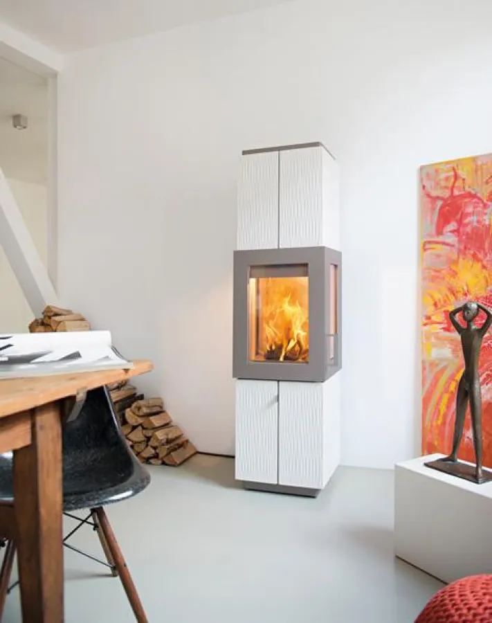 (openPR) Mit seiner feinen Struktur-Keramik und der hohen, schlanken Form setzt der Kaminofen Asmara ein