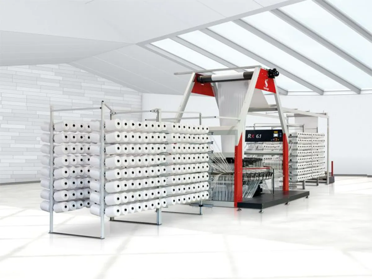 Ausgelegt auf leichte bis mittelschwere Bändchengewebe aus Polypropylen und HDPE, eignet sich die RX 6.1 auch speziell für die Verarbeitung von Bändchen aus Polyester. Mit einer Produktionsgeschwindigkeit von 920 Schuss/Minute und Webbreiten von 850 mm – 1300 mm doppeltflach ist sie die perfekte Ergänzung zu den Modellen RX 6.0 (für leichte Rundgewebe im normalen Sackbreitenbereich) und RX 8.0 (für schwere, hochfeste Planengewebe und Containersäcke). Der Webprozess ist ölfrei; das garantiert eine optimale Beschichtungshaftung und ermöglicht auch die Verwendung der produzierten Säcke zum Verpacken von Lebensmitteln. Aufgrund der größeren Arbeitsbreite lässt sich auf der RX 6.1 auch sehr gut Flachgewebe für getubte mehrlagige Säcke herstellen.